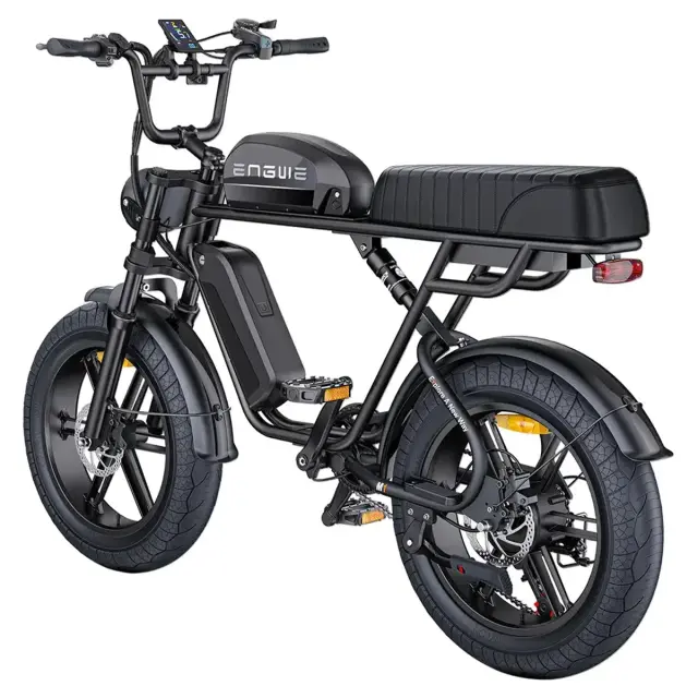 Barvni LCD zaslon ENGWE M1 zagotavlja jasne in bistvene informacije, kot so hitrost, nivo baterije in prevožena razdalja. Poleg tega dvojni sedež ponuja ergonomsko podporo in dovolj prostora, zaradi česar je udoben za skupne vožnje, ne glede na to, ali gre za dnevno vožnjo ali slikovito potovanje.