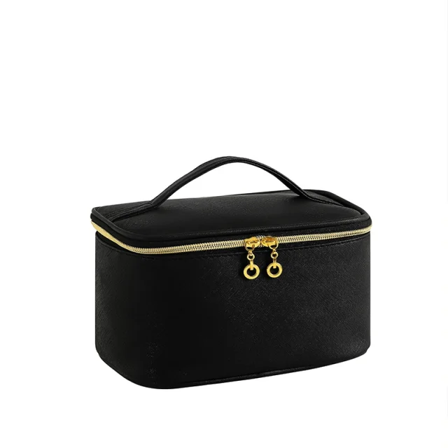 Enobarvna kozmetična torbica iz prešitega blaga Black