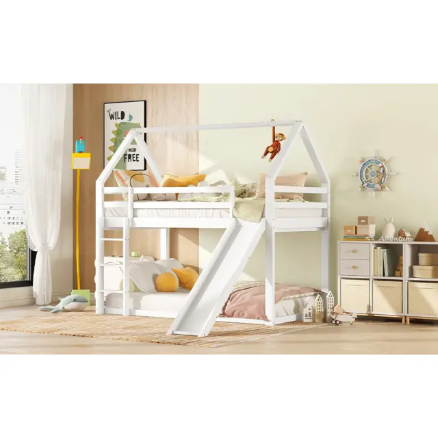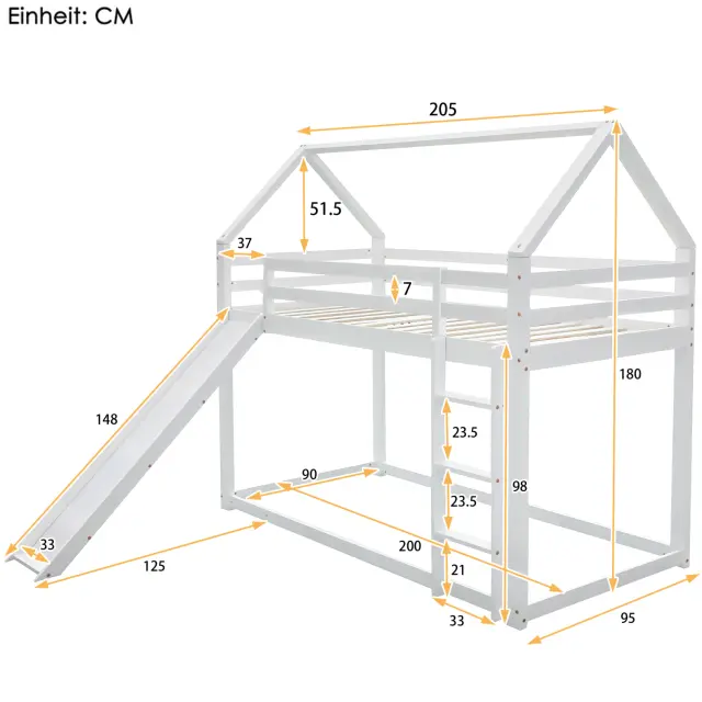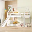 Enojna postelja, otroška postelja, hišna postelja s toboganom in lestvijo, bela, 90x200 cm