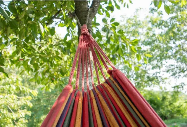 VZDRŽLJIV – debele vrvice in trpežni členi omogočajo varno uporabo viseče mreže z močjo do 120 kg.
