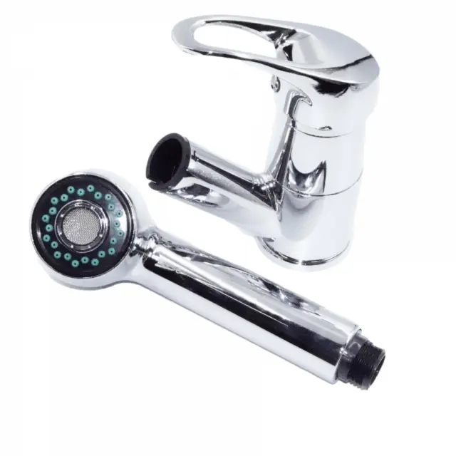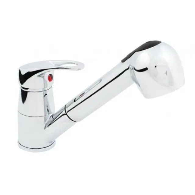Keramični vložek 35 mm Regulator toka (aerator) M24x1 Izvlečna in vrtljiva glava tuša Avtomatska preklopna kad/tuš Priključne cevi G3/8 – M10x1 Montaža: namestitev z eno luknjo Material: medenina Barva: krom
