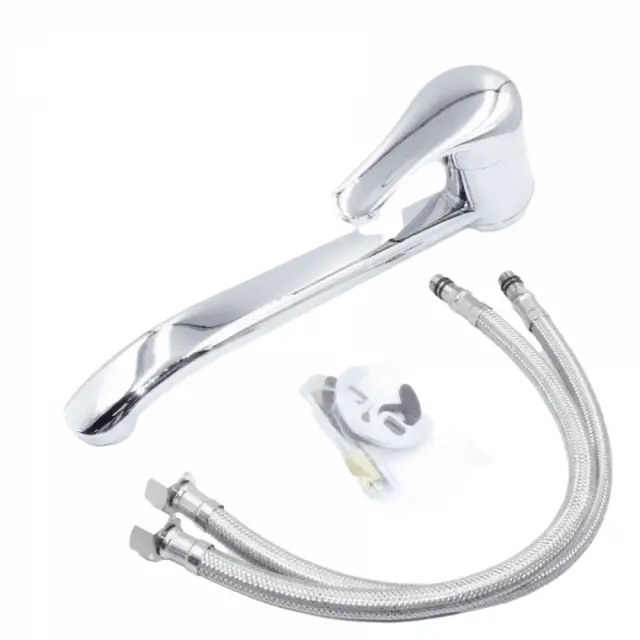 Keramični vložek 40 mm Regulator toka (aerator) M24x1 Vrtljivi izliv Priključne cevi G3/8 – M10x1 Montaža: namestitev z eno luknjo Material: medenina Barva: krom