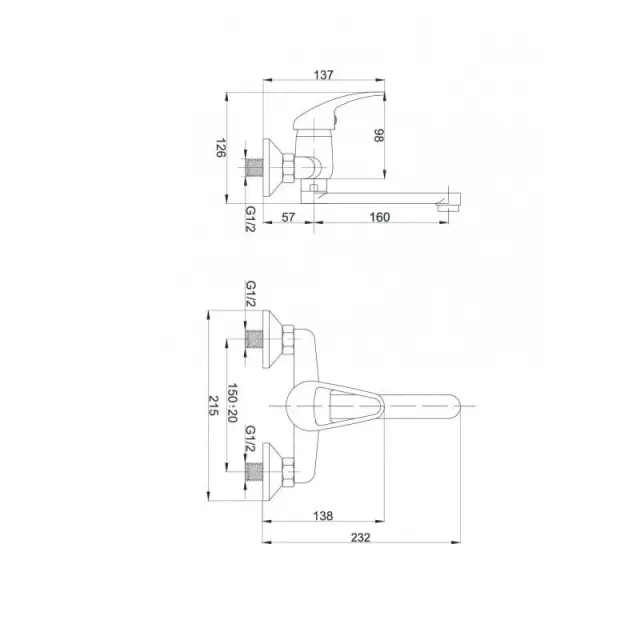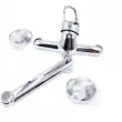 Keramični vložek 35mm Regulator toka (aerator) M24x1 Vrtljivi izliv tip “L” Ekscentrični priključek G 1/2″, razmik 150 ± 20mm Ekscentri in tesnila s filtrom Montaža: stenska montaža Material: medenina Barva: krom