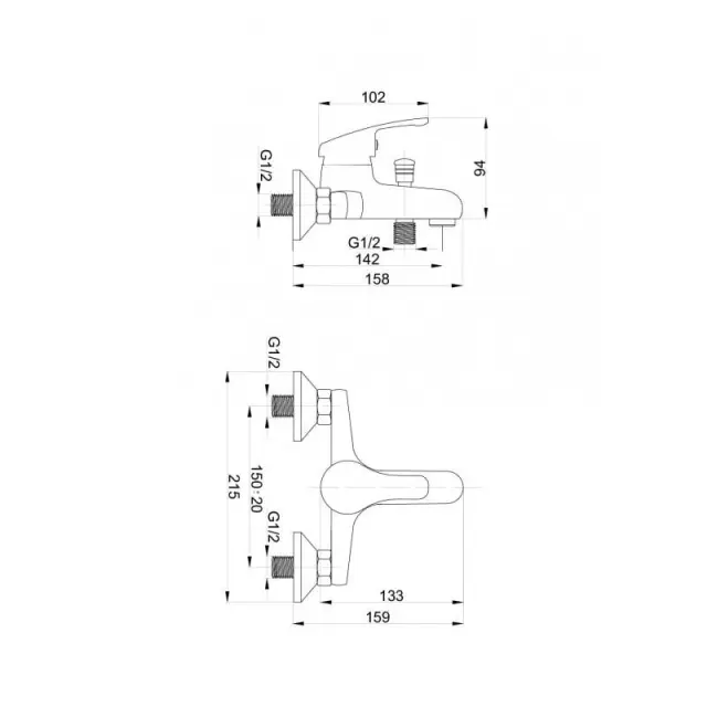 Ekscentrični priključek G 1/2″, razmik 150 ± 20 mm