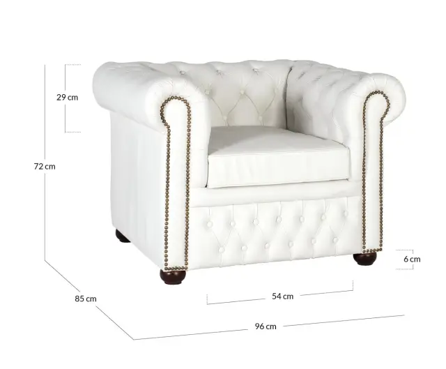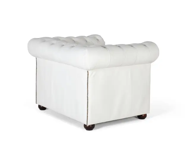Enosedni fotelj Chesterfield, oblazinjen v naravnem usnju z belo površino