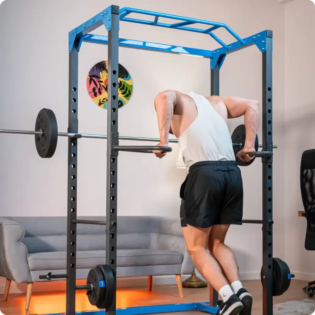 Klatka THUNDER® GATE omogoča varno dvigovanje uteži, trening hrbta, prsi, ramen, nog in rok – vse na eni robustni konstrukciji.
