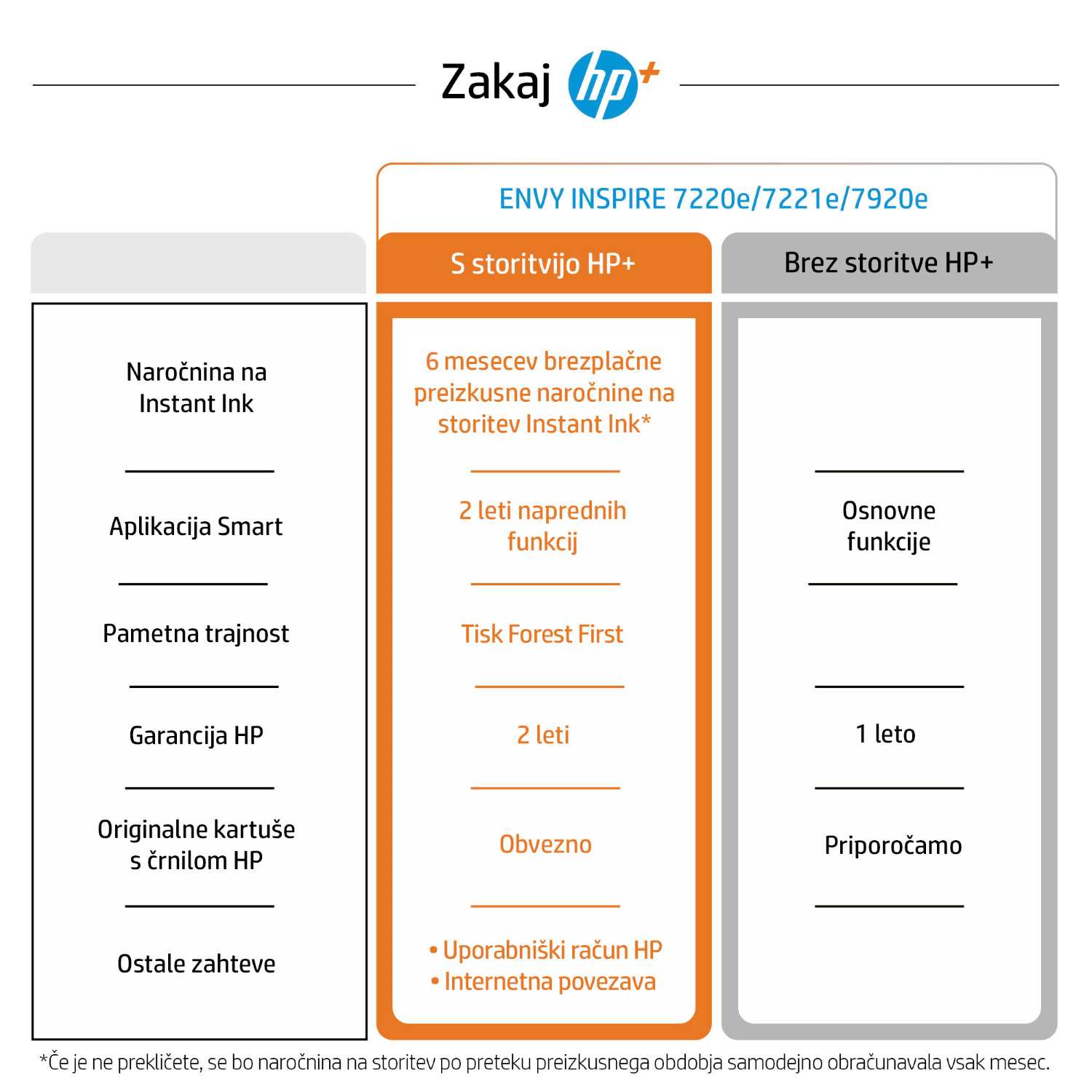 S HP+ pridobite dodatno leto garancije. Za HP+ potrebujete uporabniški račun HP in delujočo internetno povezavo ter uporabo originalnih HP kartuš s črnilom.