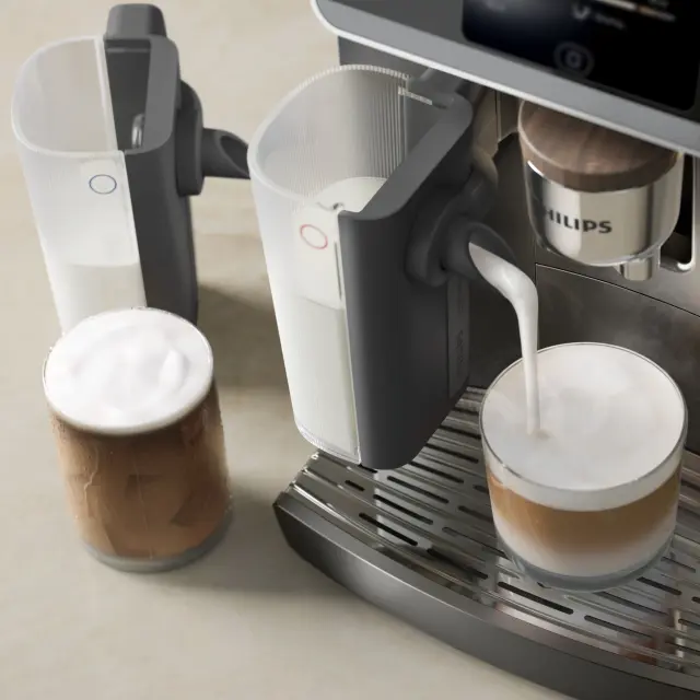 S tehnologijo LatteGo Pro aparat ustvari gladko in bogato mlečno peno – primerno tako za kravje mleko kot za rastlinske nadomestke. Sistem je enostaven za čiščenje, saj nima cevk, omogoča pomivanje v pomivalnem stroju in ga lahko očistite v manj kot 10 sekundah. Aparatu sta priložena 2 sistema LatteGo za toplo ali hladno mlečno peno.