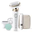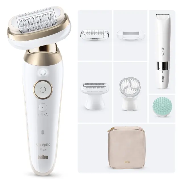 Braun Silk-épil 9 Flex 3D SkinSpa – vaš popolni spremljevalec za izboljšanje domače redne nege kože in odstranjevanja dlačic. Komplet vse v enem SkinSpa za gladko kožo od glave do pet. Nadgradite svojo rutinsko nego. Razvajajte svojo kožo in kadar koli uživajte v do enem mesecu gladke kože. Odkrijte prvi epilator na svetu s popolnoma gibljivo glavo. Prilagodi se vsaki oblini, tudi na težavnih območjih. Doživite udobje tehnologije Smart Touch, ki vam omogoča, da zlahka prilagodite pritisk na kožo, tako da avtomatsko preklaplja med močnim in nežnim načinom. Dosezite kakovost rezultatov, kot bi bili v salonu, v udobju svojega doma. Profesionalni rezultati v samo treh preprostih korakih, brez obiskov salona. Izpopolnite svojo kožo, kadar koli želite – vedno je pripravljena, da jo pokažete. Zasnovani, da vzdržijo vrsto let: naši epilatorji so izdelani v Nemčiji.