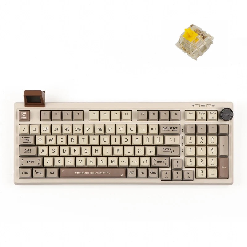 Epomaker RT100 je mehanska tipkovnica s 97 tipkami, številčnico in številčnico. Zaradi ergonomske zasnove z montažo s tesnili je popolna dodatna oprema za vašo konfiguracijo. Zaradi brezžične povezave Bluetooth 5.0 2.4G in žične povezave Type-C je ta tipkovnica idealna. Zaradi prilagodljivega zaslona Smart Mini TV in retro sloga je tipkovnica edinstven kos namizne umetnosti. Tipkovnica Epomaker RT100 ima LED diode, usmerjene proti jugu, in je združljiva z operacijskim sistemom Windows / macOS.