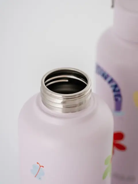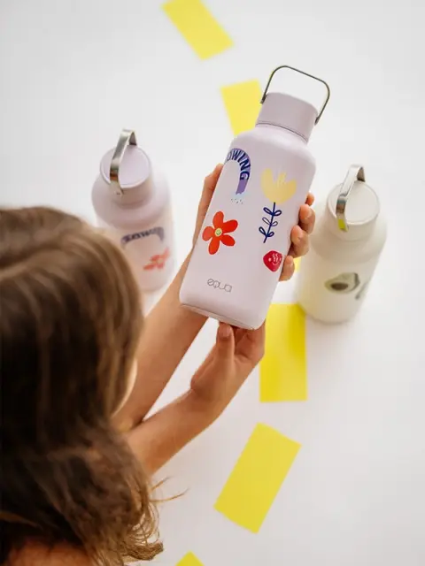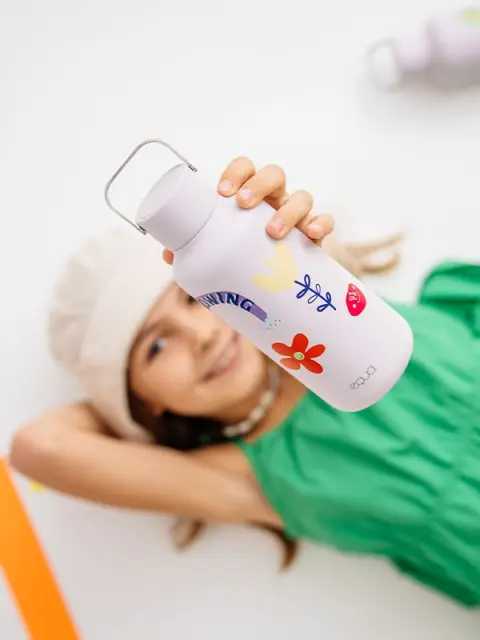 Lahka, trdna in praktična. Omejena steklenica Flower Power za vodo se popolnoma prilega vsaki šolski torbi.
