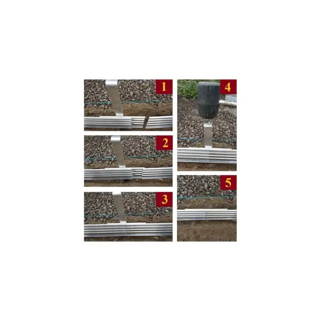 Robovi travnate površine iz kovine se enostavno polagajo brez betonskega temelja. Vendar v ohlapnih ali kamnitih tleh pogosto potrebujejo dodatno pritrditev, da preprečite zdrs. Naša tlačna sidra rešujejo to težavo z zanesljivo fiksacijo v tla.