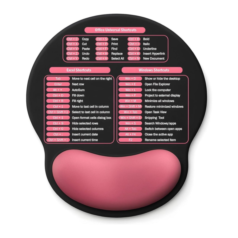 Ergonomična podloga za miško z oporo za zapestje Excel za udobno delo Pink