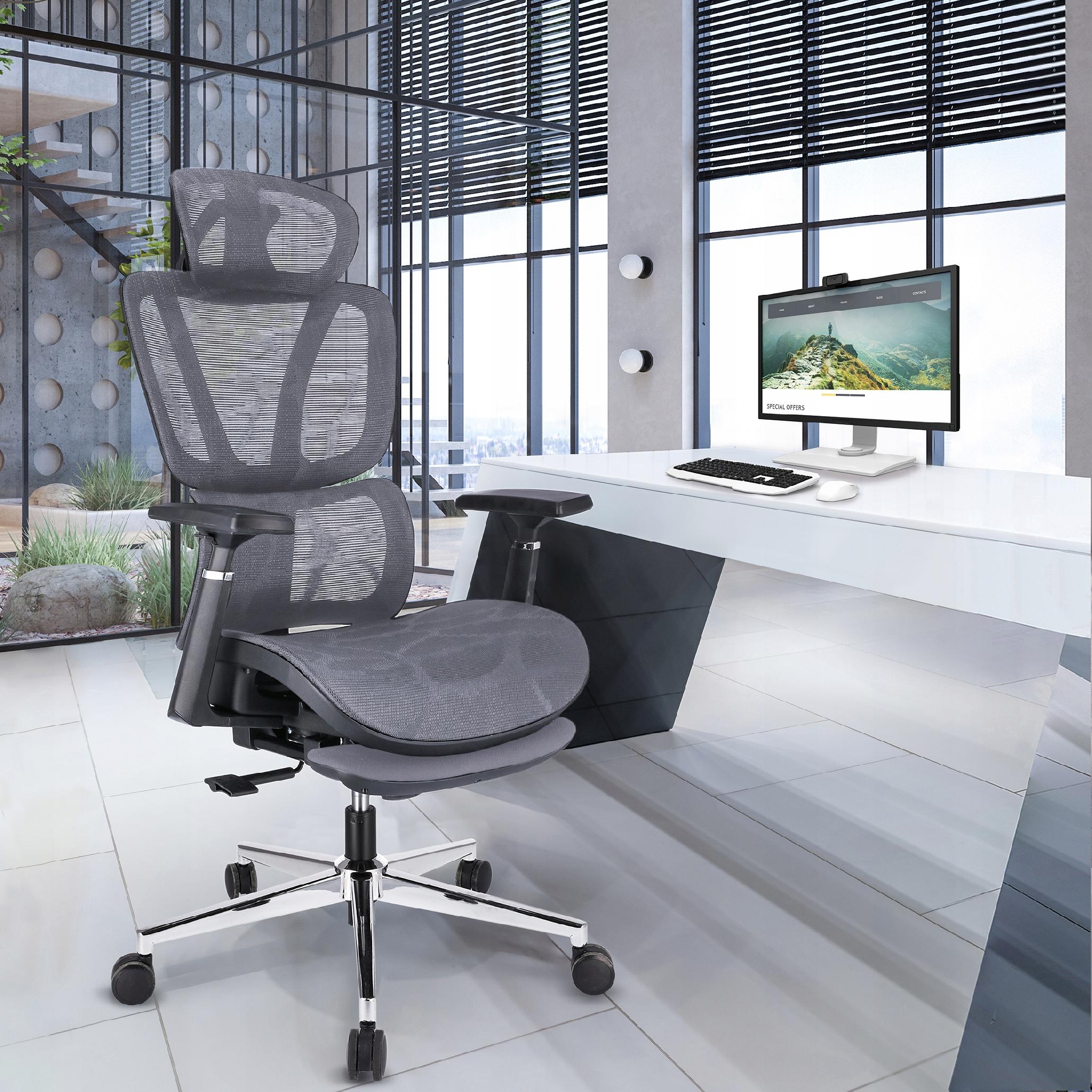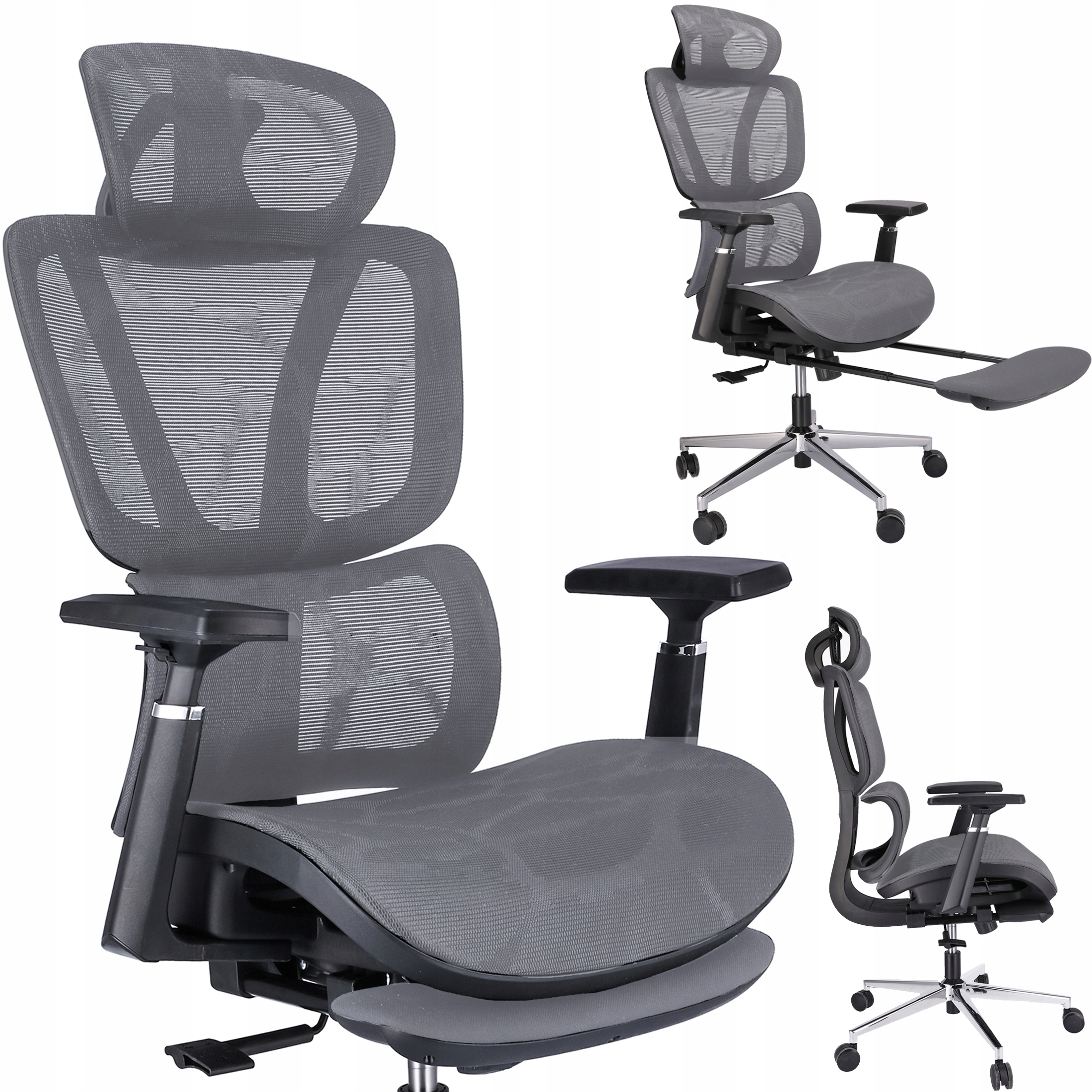 Ergonomski fotelj NEOVA z oporo za noge - siv