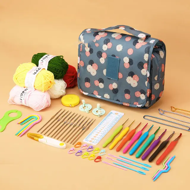 Popoln komplet za kvačkanje: ta obsežen komplet vključuje vse, kar potrebujete, da začnete kvačkati takoj. S širokim izborom velikosti kavljev, igel za prejo, markerjev za šive in drugih potrebnih pripomočkov imate vse, kar potrebujete za ustvarjanje različnih projektov.