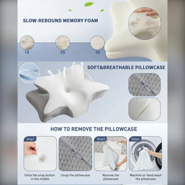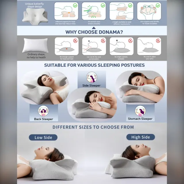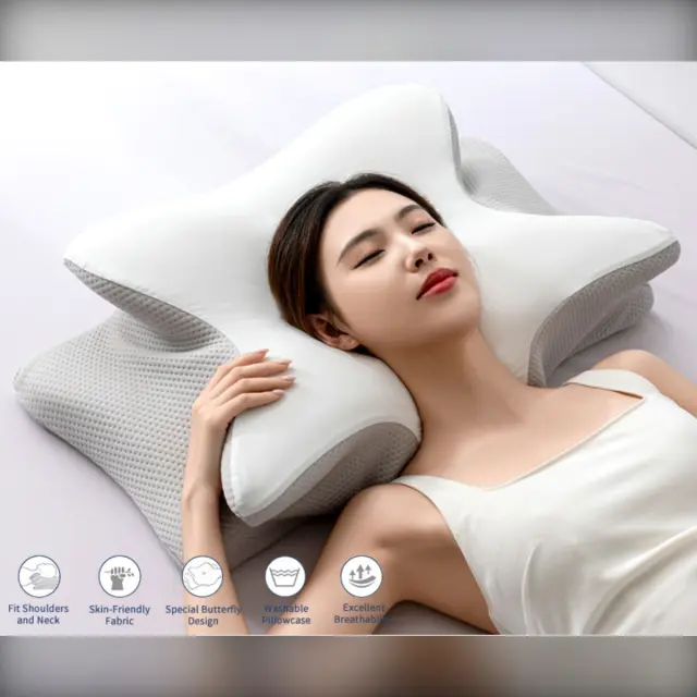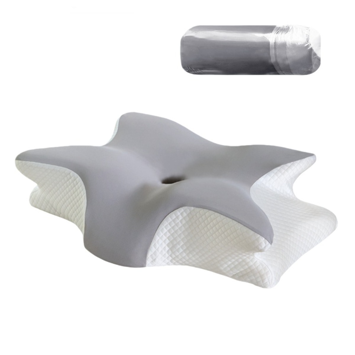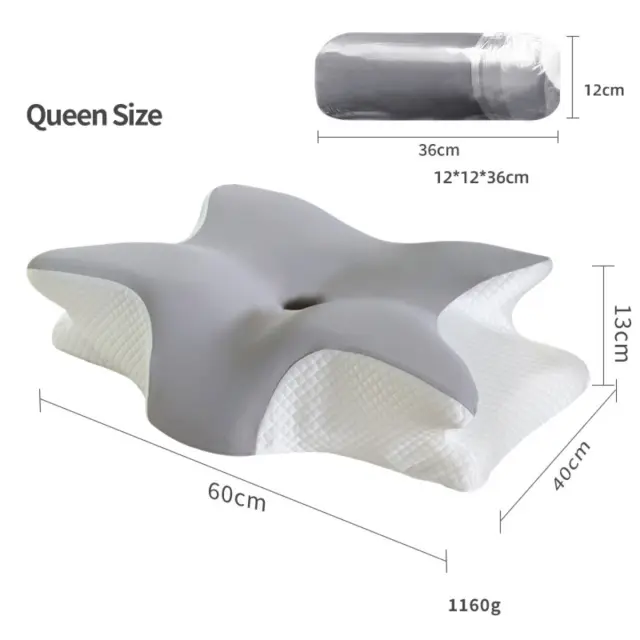Ergonomski vzglavnik iz spominske pene Butterfly 60x40x13cm za globok spanec LightGrey