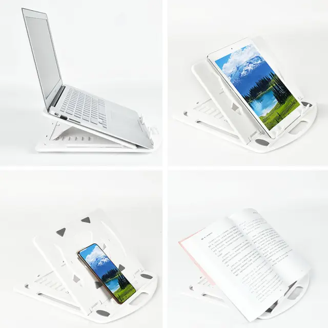 Nastavljiva višina in kot: To stojalo za prenosnik ima 7-stopenjsko nastavitev višine, ki vam omogoča, da najdete popoln kot gledanja za optimalno udobje in manjšo obremenitev vratu. Odprta zasnova spodbuja pretok zraka in pomaga ohranjati vaš prenosnik hladen med daljšo uporabo.