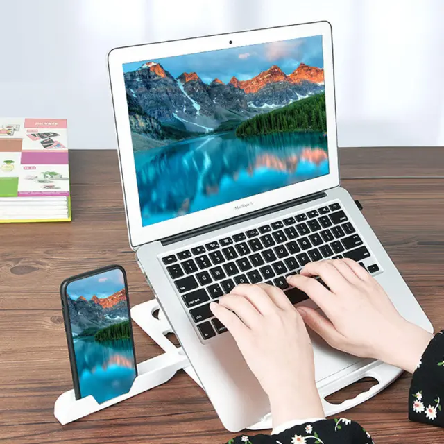 Stabilno in nedrseče: Izdelano iz vrhunskega silikona, to stojalo zagotavlja stabilno platformo za vaš prenosnik. Nedrseča podlaga zagotavlja, da vaša naprava ostane varno na mestu, tudi med intenzivnim tipkanjem.