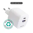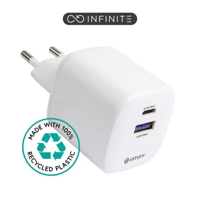 eSTUFF INFINITE polnilnik USB-C, USB-A 67W GaN bel, reciklirana plastika