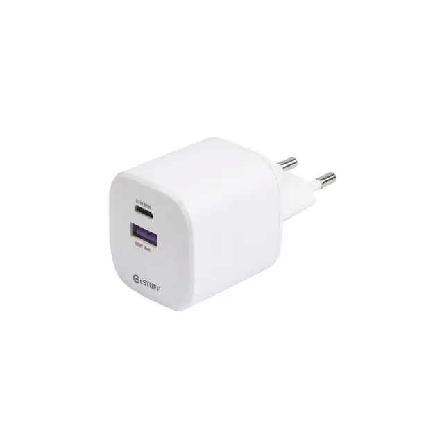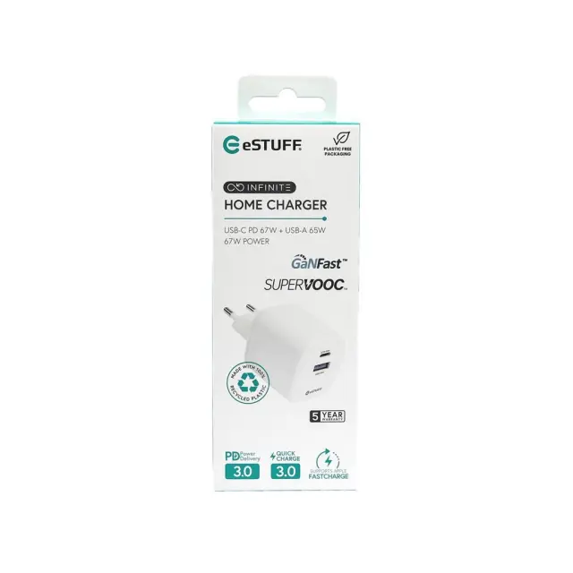 eSTUFF INFINITE polnilnik USB-C, USB-A 67W GaN blister, bel, reciklirana plastika