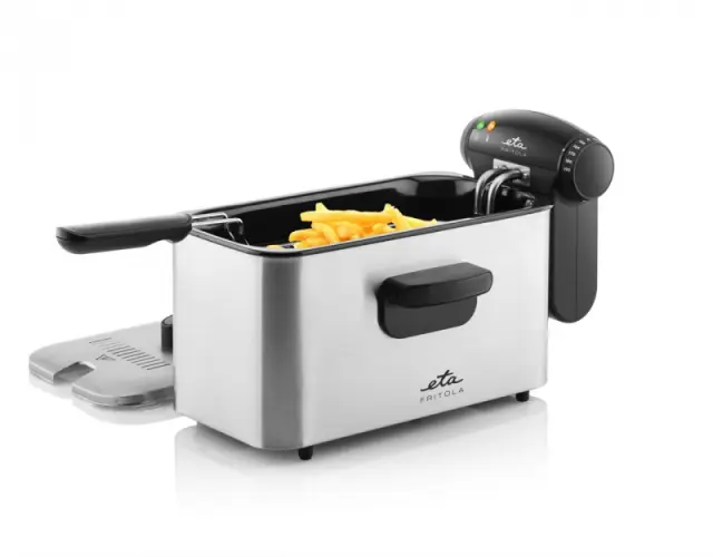 Zahvaljujoč zvezni regulaciji temperature olja hitro in brez škodljivega pregrevanja pripravi enakomerno ocvrte jedi.