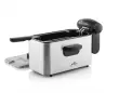 Zahvaljujoč visoki vhodni moči 2.000 W se olje hitro segreje na želeno temperaturo, ki jo enostavno in gladko uravnavate (150-190 °C) z vrtljivim kolescem, ki se nahaja na sredini upravljalne plošče.