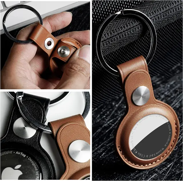 Etui AirTag z obeskom za ključe iz PU usnja, paket 4 kosov Brown