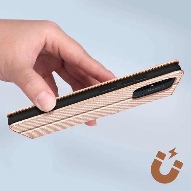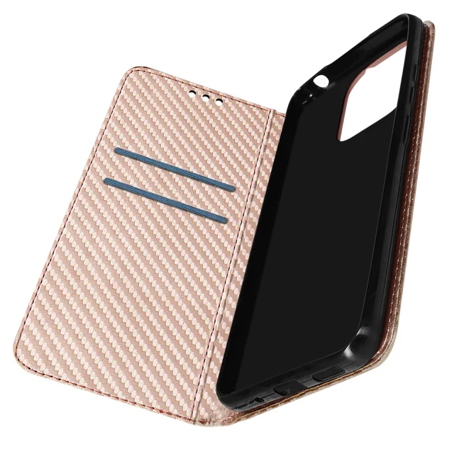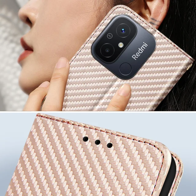Etui Carbon Effect za Xiaomi Redmi 12C z magnetnim pokrovom, video stojalo, crna