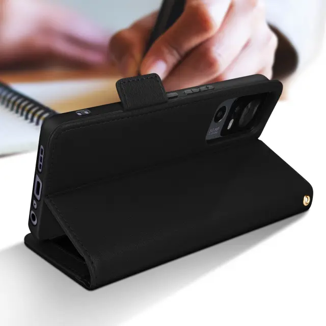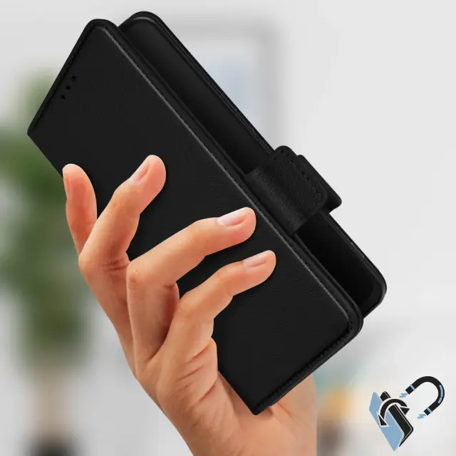 Etui, denarnica in držalo za video TCL 40R z videzom zrnatega usnja - crna