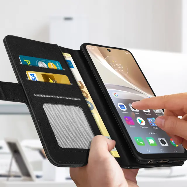 Etui, denarnica in stojalo za Motorola Moto G32, žepi za kartice in racune - crna