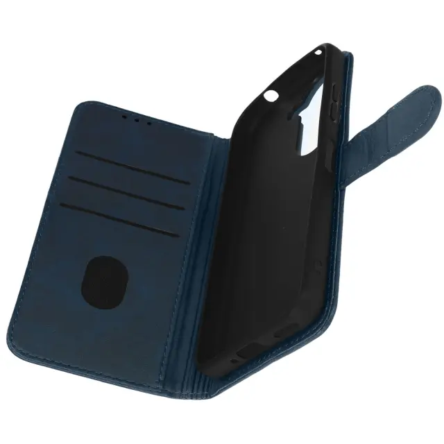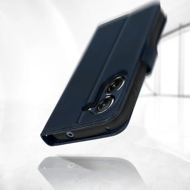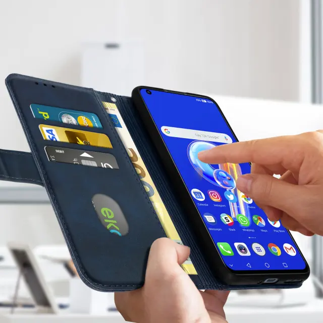Etui, denarnica in stojalo za Asus Zenfone 9, žepi za kartice in zapestni pašcek za denar - moder