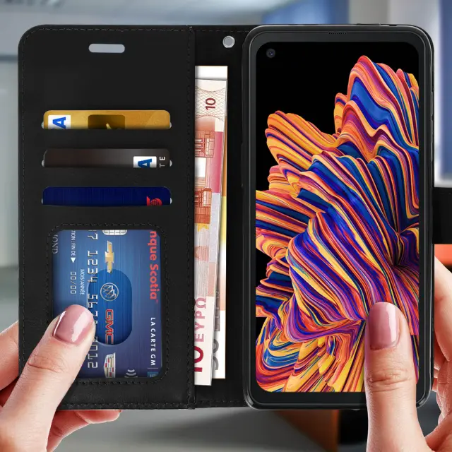 Zaščitni ovitek posebej zasnovan za Samsung Galaxy Xcover Pro. Dovršena prevleka iz ekološkega usnja z učinkom teksture in šivanimi zaključki, umirjena in elegantna. Po meri oblikovana, prilagodljiva in odporna podporna prevleka iz silikonskega gela. Učinkovito ščiti vaš pametni telefon pred vsakodnevnimi udarci in praskami.