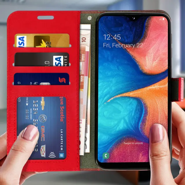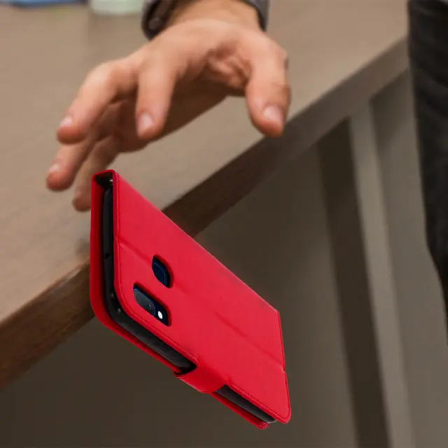 Zaščitni ovitek posebej oblikovan za Samsung Galaxy A20e. Dovršena prevleka iz ekološkega usnja z učinkom teksture in šivanimi zaključki, umirjena in elegantna. Po meri oblikovana, prilagodljiva in odporna podporna prevleka iz silikonskega gela. Učinkovito ščiti vaš pametni telefon pred vsakodnevnimi udarci in praskami.