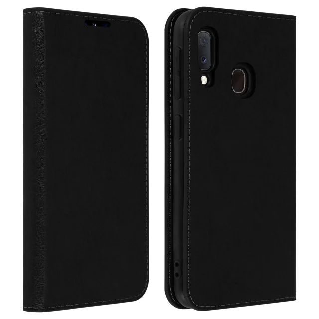 Etui, držalo za kartice in stojalo za video iz pravega usnja - crna str. Samsung Galaxy A20e