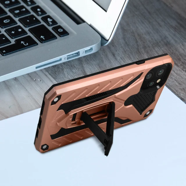 Etui iz dveh materialov, odporen na udarce, s stojalom za video podporo - rožnato zlato str. Apple iPhone 11 Pro
