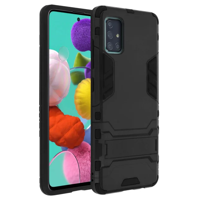 Etui iz dveh materialov za Samsung Galaxy A51, odporen proti udarcem, zbirka Kickstand - crn