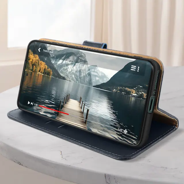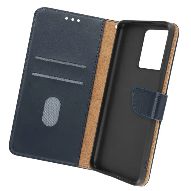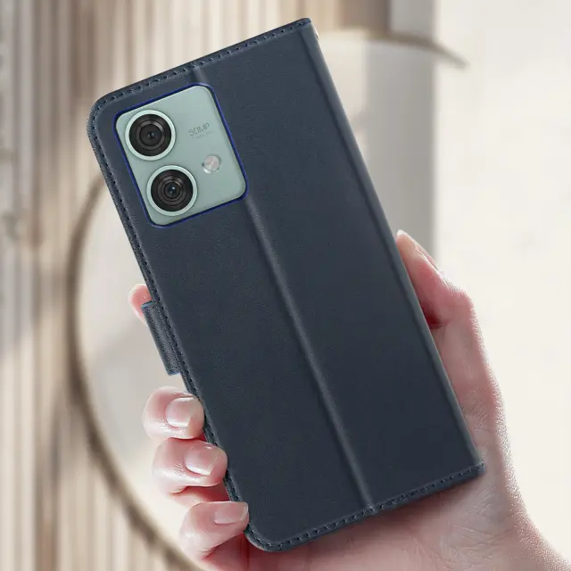 Etui Motorola Edge 40 Neo, preklop za denarnico in držalo za video - polnocno modra