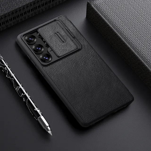 Etui Nillkin Qin Pro na Samsung Galaxy S25 Ultra z klapką i osłoną aparatu - czarne