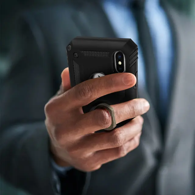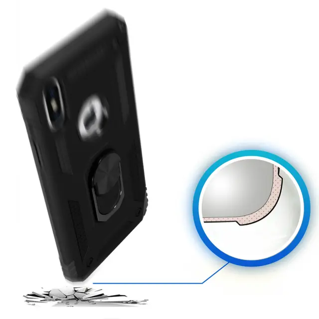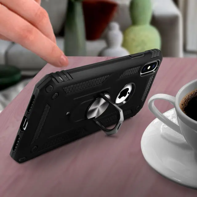 Ponudite maksimalno zašcito za vaš Apple iPhone XS Max in pomnožite njegovo uporabo s tem izjemno vsestranskim ohišjem. Zahvaljujoc podpornemu obrocu se lahko uporablja kot video podpora za vaš mobilni telefon in se lahko pritrdi na magnetni nosilec.