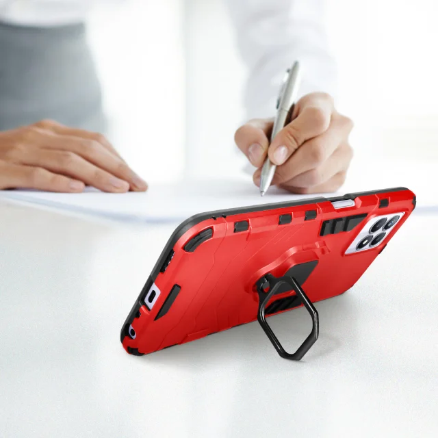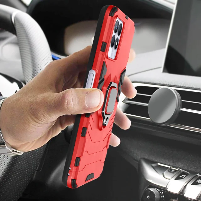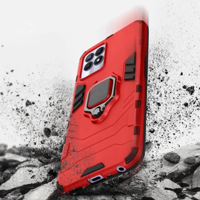 Etui Realme 8i iz dveh materialov, odporen na udarce, s kovinskim obrocem - rdec