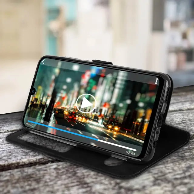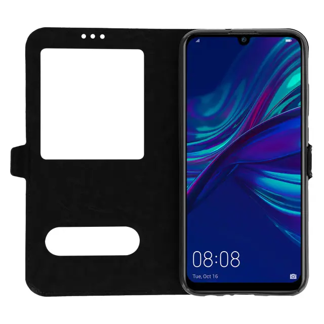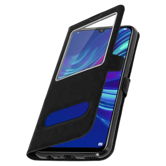 Etui z dvojnim oknom (hitra sprostitev), funkcija podpore za video - crna str. Huawei P Smart 2019 / Honor 10 Lite