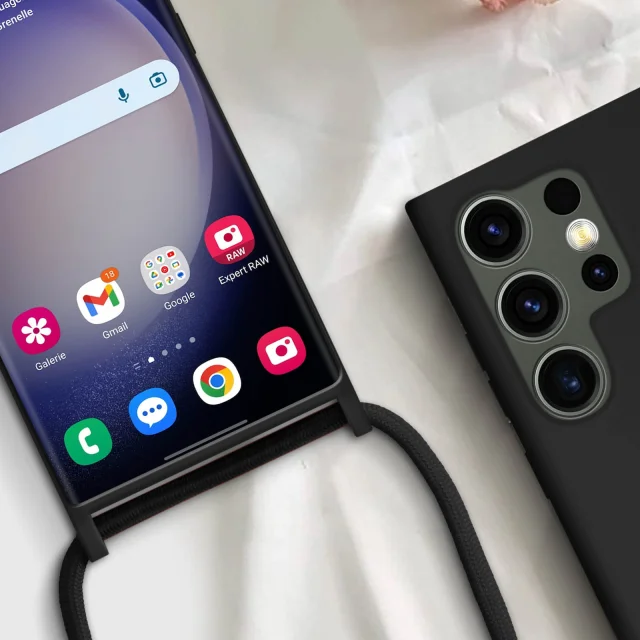 Etui z vrvico za Samsung S23 Ultra, crna serija NeckShell