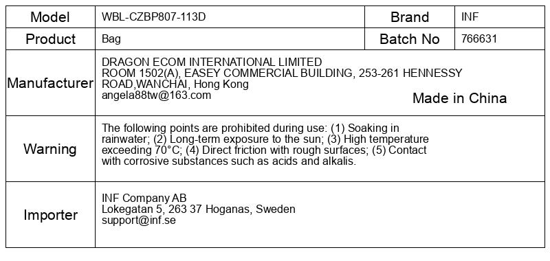 Med uporabo je prepovedano naslednje: (1) Namakanje v deževnici; (2) Dolgotrajna izpostavljenost soncu; (3) visoka temperatura nad 70 °C; (4) Neposredno trenje z grobimi površinami; (5) Stik z jedkimi snovmi, kot so kisline in alkalije.
