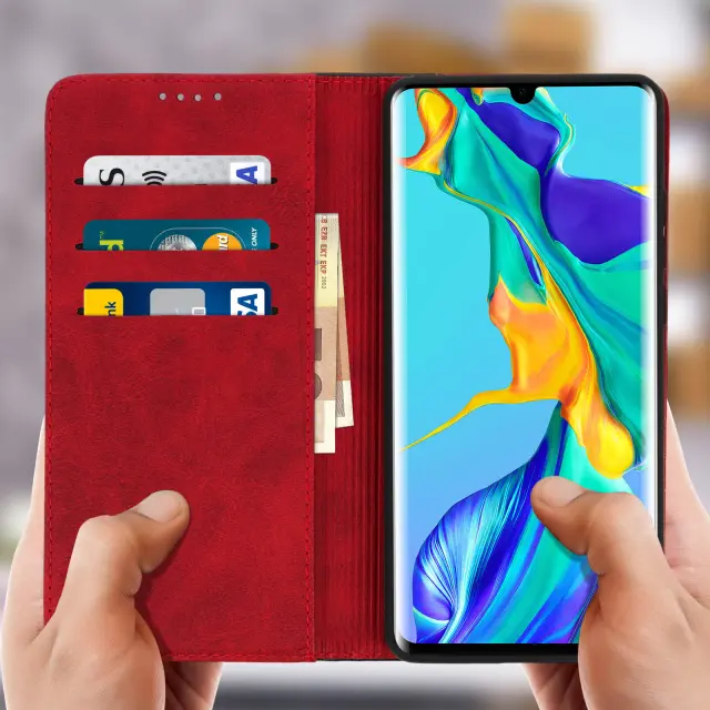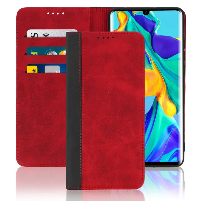 Folio etui iz eko usnja, zasnovan posebej za Huawei P30 Pro / Prefinjen in ergonomski dizajn. Visokokakovostna dvobarvna prevleka iz umetnega usnja / obrabljen zaključek z vidnimi šivi. Predal za kartice, vgrajen v podlogo zavihka. Zaščitni ovitek mehak na dotik, zasnovan po meri za ta telefon.