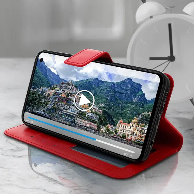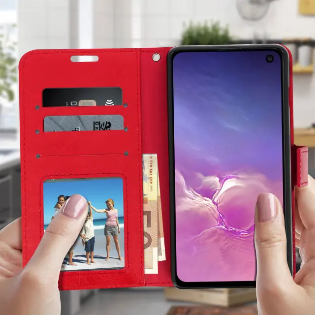 Etui za denarnico in stojalo za video, serija Vintage - rdeca str. Samsung Galaxy S10e
