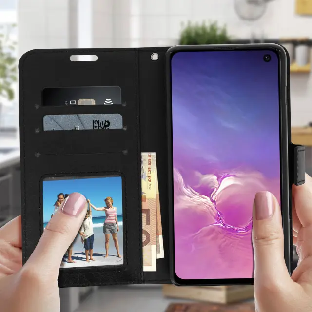 Etui za denarnico in stojalo za video, serija Vintage - crna str. Samsung Galaxy S10e