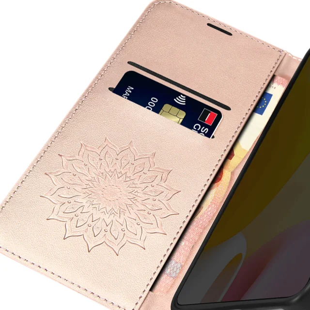 Etui za denarnico Xiaomi 12 Lite z vzorcem rožnate rože in mandale, podpira video funkcijo