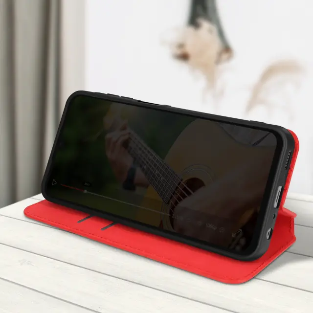 Etui za Galaxy A05s Card Holder Video Support Magnetic Flip, Rdeča