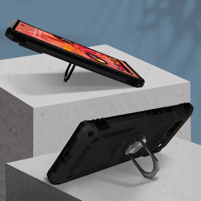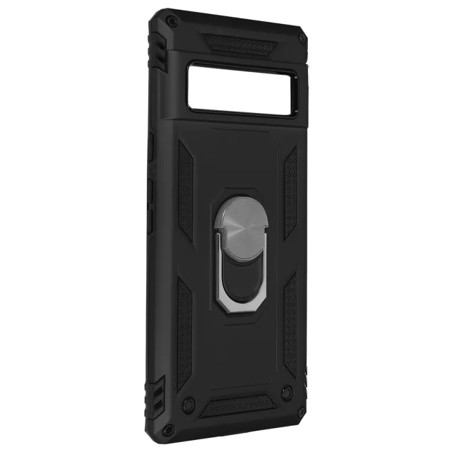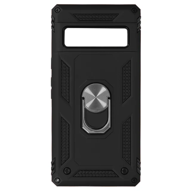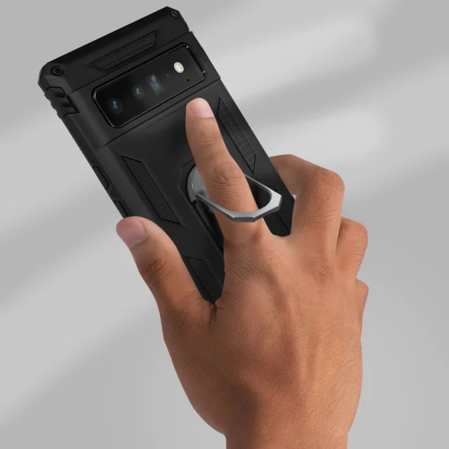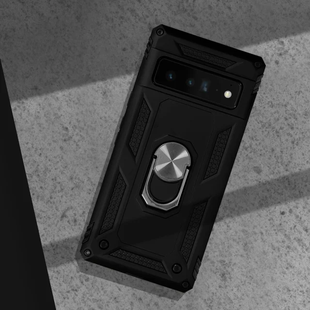 Etui za Google Pixel 6 Pro iz dveh materialov, odporen proti udarcem, s kovinskim podpornim obrocem - crn