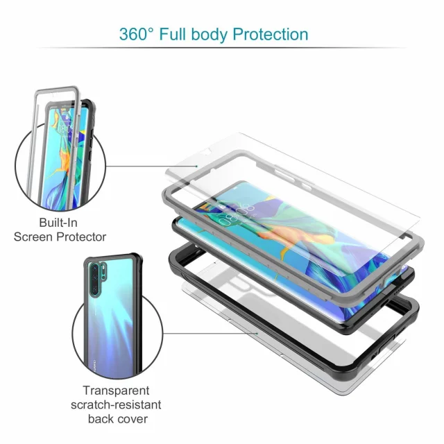 Etui za Huawei P30 Pro z zaščitno folijo črno/siv